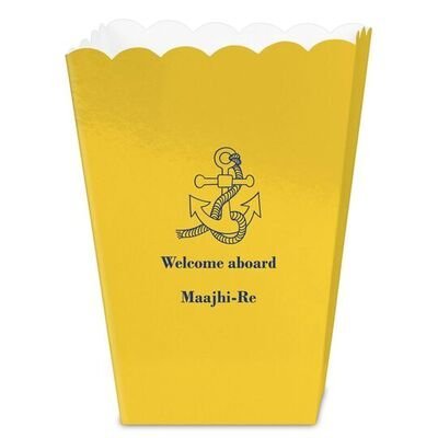 Personalized mini popcorn treat boxes are perfect for treats at your party. Free online preview. Choice of 14 box colors, 40+imprint colors and typestyles. Heavy card stock with a glossy finish.
