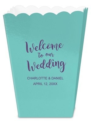 Personalized mini popcorn treat boxes are perfect for treats at your party. Free online preview. Choice of 14 box colors, 40+imprint colors and typestyles. Heavy card stock with a glossy finish.